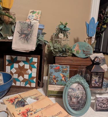 Our cottage is located in Centralia, MO at 316 S Collier ST. We are open every second Saturday in 2026. Our hours are 9:00 AM to 3:00 PM. We are a vintage and antique shop. With unique items for sale. Eva often creates one-of-a-kind designs that incorporate vintage pieces.